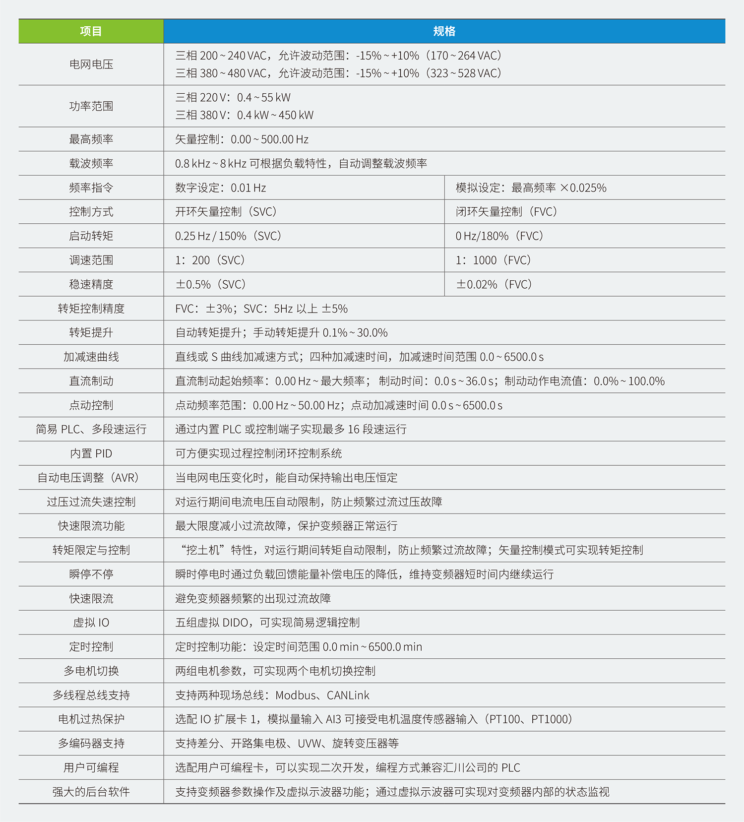 MD500E 系列變頻器是一款通用高性能電流矢量變頻器,主要用于控制和調(diào)節(jié)三相交流同步電機(jī)的速度和轉(zhuǎn)矩,是MD380E 系列的技術(shù)升級產(chǎn)品。MD500E 采用高性能的矢量控制技術(shù),低速高轉(zhuǎn)矩輸出,具有良好的動態(tài)特性、超強(qiáng)的過載能力、增加了用戶可編程功能及后臺監(jiān)控軟件,通訊總線功能,支持多種PG 卡等,組合功能豐富強(qiáng)大,性能穩(wěn)定。
